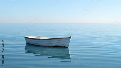 Fototapeta premium A tranquil boat rests on smooth water under a clear sky, offering perfect...