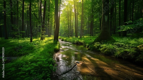 © vannet, Obraz premium A tranquil forest clearing with a gentle stream