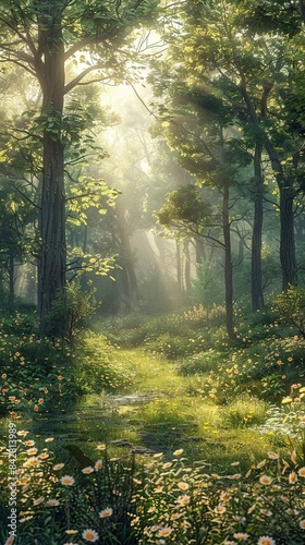 © peppastocker, Obraz premium A tranquil forest glade, realistic.