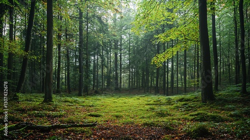 Obraz premium A tranquil forest scene displaying numerous tall trees with foliage