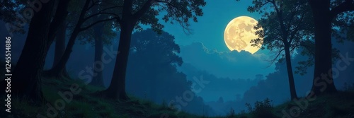 Fototapeta premium A tranquil forest scene illuminated by the soft glow of the full moon,...