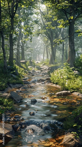 © peppastocker, Fototapeta premium A tranquil forest stream, realistic.