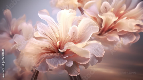 © Graphics.Parasite, Fototapeta premium A tranquil image showcasing delicate and graceful whispering flowers that seem to communicate through their petals AI Generative