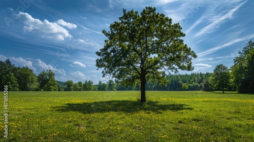 Obraz premium A tranquil meadow with a single, majestic tree providing shade, illustrating...