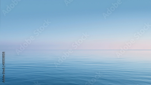Fototapeta premium A tranquil minimalist ocean line under soft pale-blue sky.
