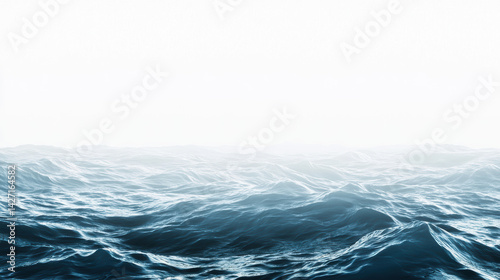 Fototapeta premium A tranquil, misty sea with gentle waves rolling towards the horizon, creating...