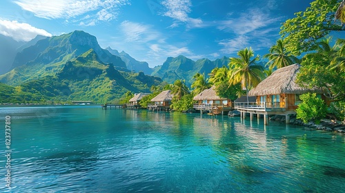 Fototapeta premium A tranquil overwater bungalow resort in Bora Bora