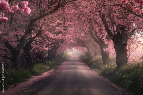 Naklejka premium A tranquil pagoda surrounded by cherry blossom trees