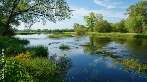 © pngking, Fototapeta premium A tranquil plain river flooded during the spring season
