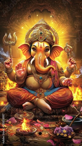 © SunSpirit, Fototapeta premium A tranquil representation of Ganesha in meditation.