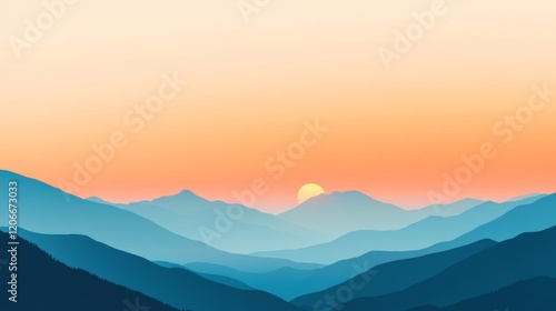 Fototapeta premium A tranquil sunrise over mountains gradient background.featuring soft oranges and blues.highlighting the peaceful start of the day.Ideal for nature blogs, travel promotions, and serene visuals