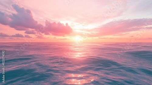 Fototapeta premium A tranquil sunset over a calm ocean, with soft pastel colors and gentle waves...