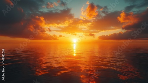 Obraz premium A tranquil sunset over calm waters, reflecting vibrant colors in the sky.
