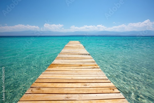 © muhrohan, Fototapeta premium A Tranquil Wooden Pier Extends into the Azure and Turquoise Seascape