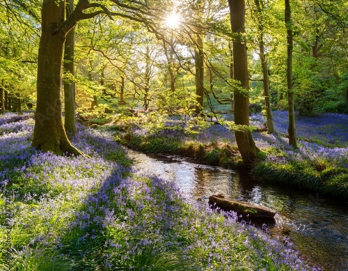 Fototapeta premium A tranquil woodland glen with a carpet of bluebells