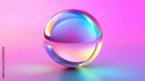 Obraz premium A translucent sphere reflecting vibrant colors against a soft gradient...