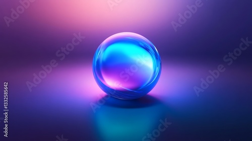 © kirania, Obraz premium A translucent spherical object glows with vibrant iridescent hues on a surface