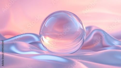 © Piyawat, Obraz premium A transparent ball floating in the air with a pastel background, rendered in 3d