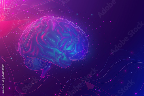 Fototapeta premium A transparent brain on a purple-blue background with abstract lines, representing intelligence, creativity, and modern technology