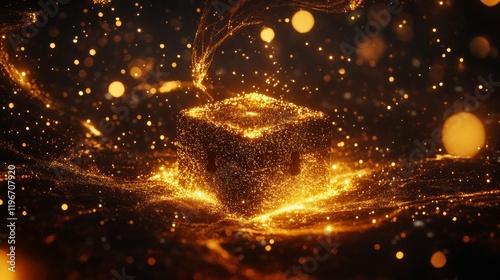 Naklejka premium A transparent glass treasure chest, golden light effect background
