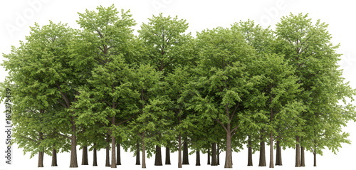 © Gianpiero, Fototapeta premium A transparent PNG of the profile of a dense forest of deciduous trees with thin trunks