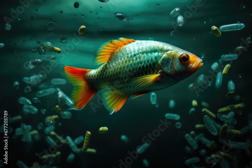 Naklejka premium A Trash Fish's Tale in the Symphony of Pollution, Echoing the Urgency of Environmental Reckoning