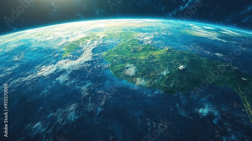 © sa-photo, Fototapeta premium A travel background with a subtle gradient of blue and green, evoking a sense of global exploration. Ample copy space.