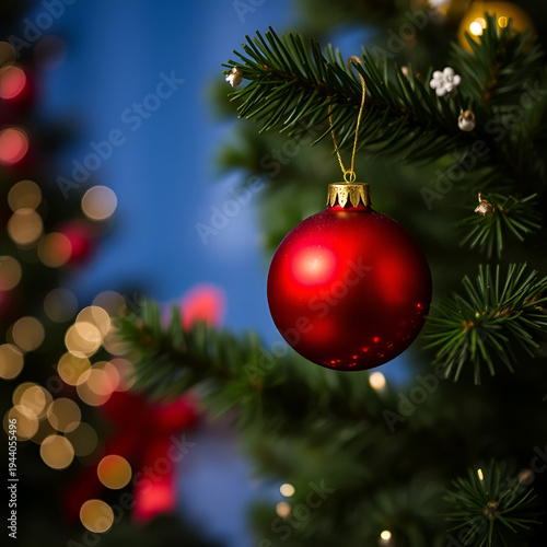 © Rachel, Obraz premium A tree adorned with a red bauble