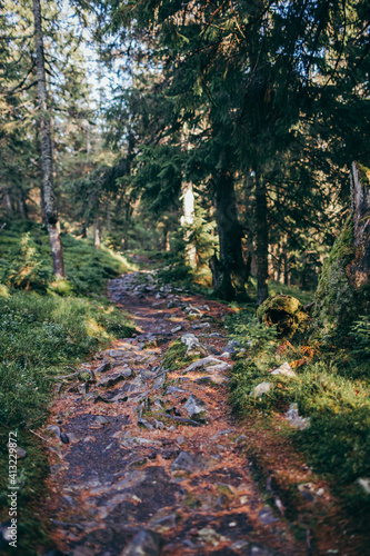 Fototapeta premium A tree in a forest a grassy hill