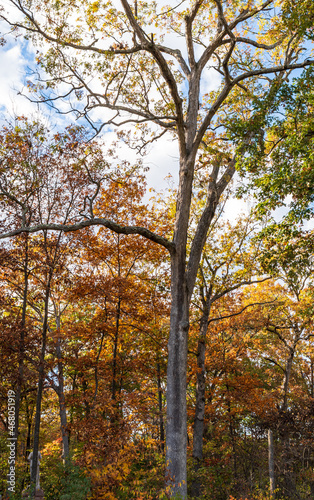 © woodsnorth, Fototapeta premium A tree in fall at the Gettysburg National Military Park on a sunny