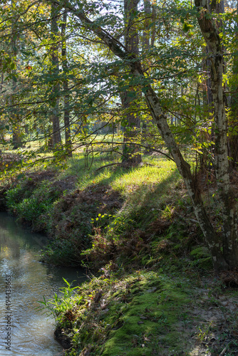© MariannePfeil, Fototapeta premium A tree in the forest leaning out over the creek.