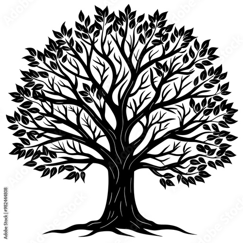 © kazi, Obraz premium A tree silhouette vector with white background ..