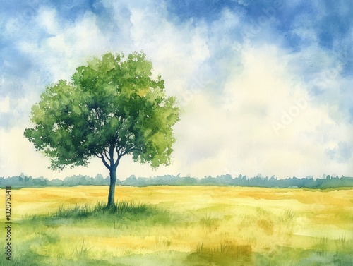 © Issaraporn, Obraz premium A tree stands in a field of grass