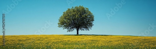 Obraz premium A tree stands in a field of yellow flowers