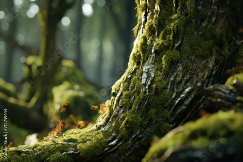 Obraz premium A tree trunk covered in moss and lichen