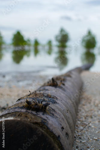 © BentChang, Obraz premium A tree trunk on the floor, tropical beach.