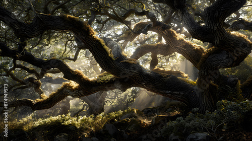 © JuroStock, Obraz premium A tree with a lot of branches and moss growing on it