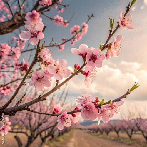 © muhammad, Obraz premium a tree with a pink flower that says spring