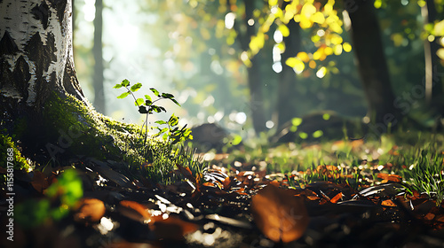 Fototapeta premium A tree with a small green plant growing out of it. generated using AI