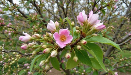 © ซัรริฮา เวาะแมะ, Obraz premium a tree with new buds in full bloom.