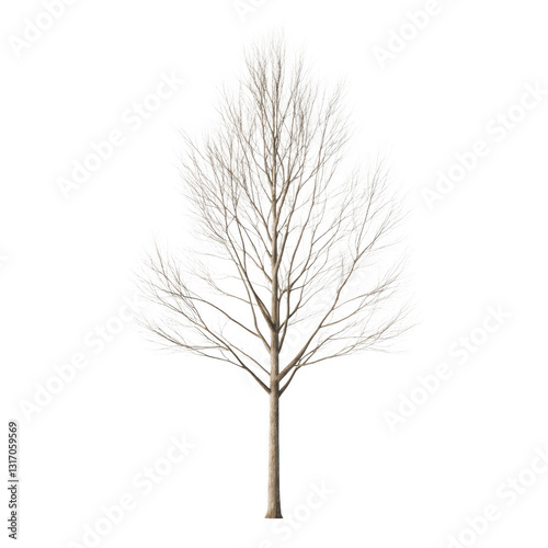 © Jaroon, Fototapeta premium A tree with no leaves is shown on a white background. The tree is bare and has no foliage, giving it a desolate and lonely appearance