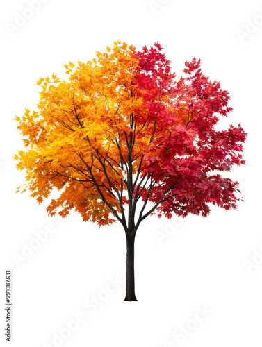 © Oulailux, Fototapeta premium A tree with orange and red leaves