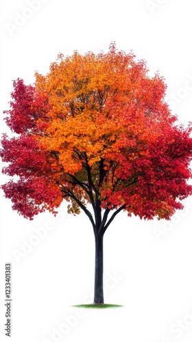 © Nattawut, Naklejka premium A tree with red leaves stands alone on a white background. The tree is the main focus of the image, and the red leaves create a sense of warmth and vibrancy