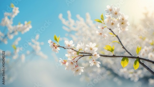 Fototapeta premium A tree with stunning white blossoms under a bright blue sky