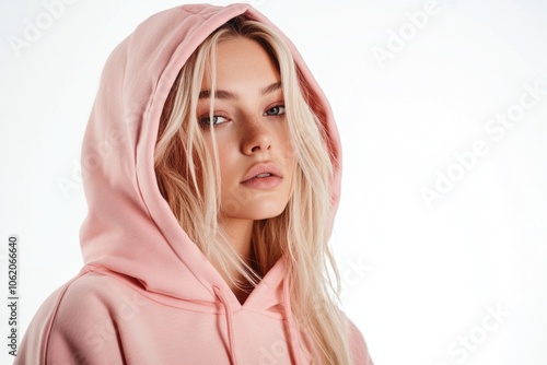 Obraz premium A trendy young woman wearing a pink hoodie, exuding style and fashion...
