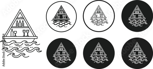 Naklejka premium A triangular shelf with bottles and glasses above waves in circle variations