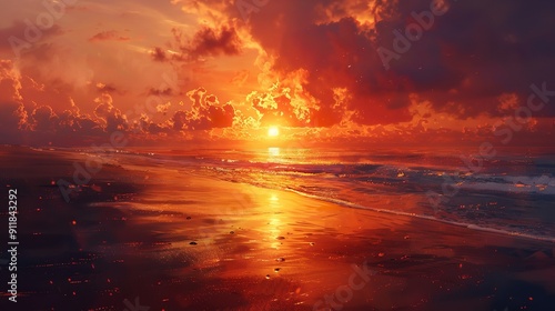 © Shahidaartworks, Obraz premium A tropical beach at sunset with palms silhouetted against the sky