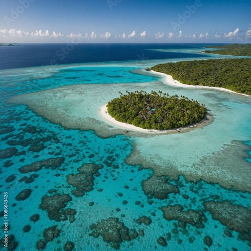 Obraz premium "A tropical island surrounded by crystal-clear turquoise waters."