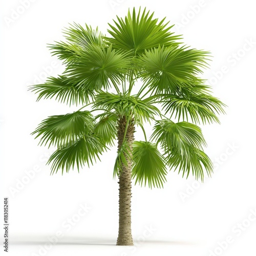 © Petchladda, Fototapeta premium a tropical palm tree, exotic plant, 3D realistic style, vibrant green tones, isolated on white background