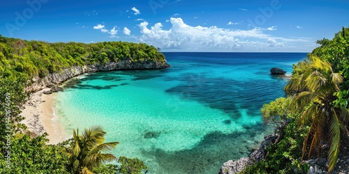 Fototapeta premium A tropical paradise with crystal-clear turquoise waters and palm trees.